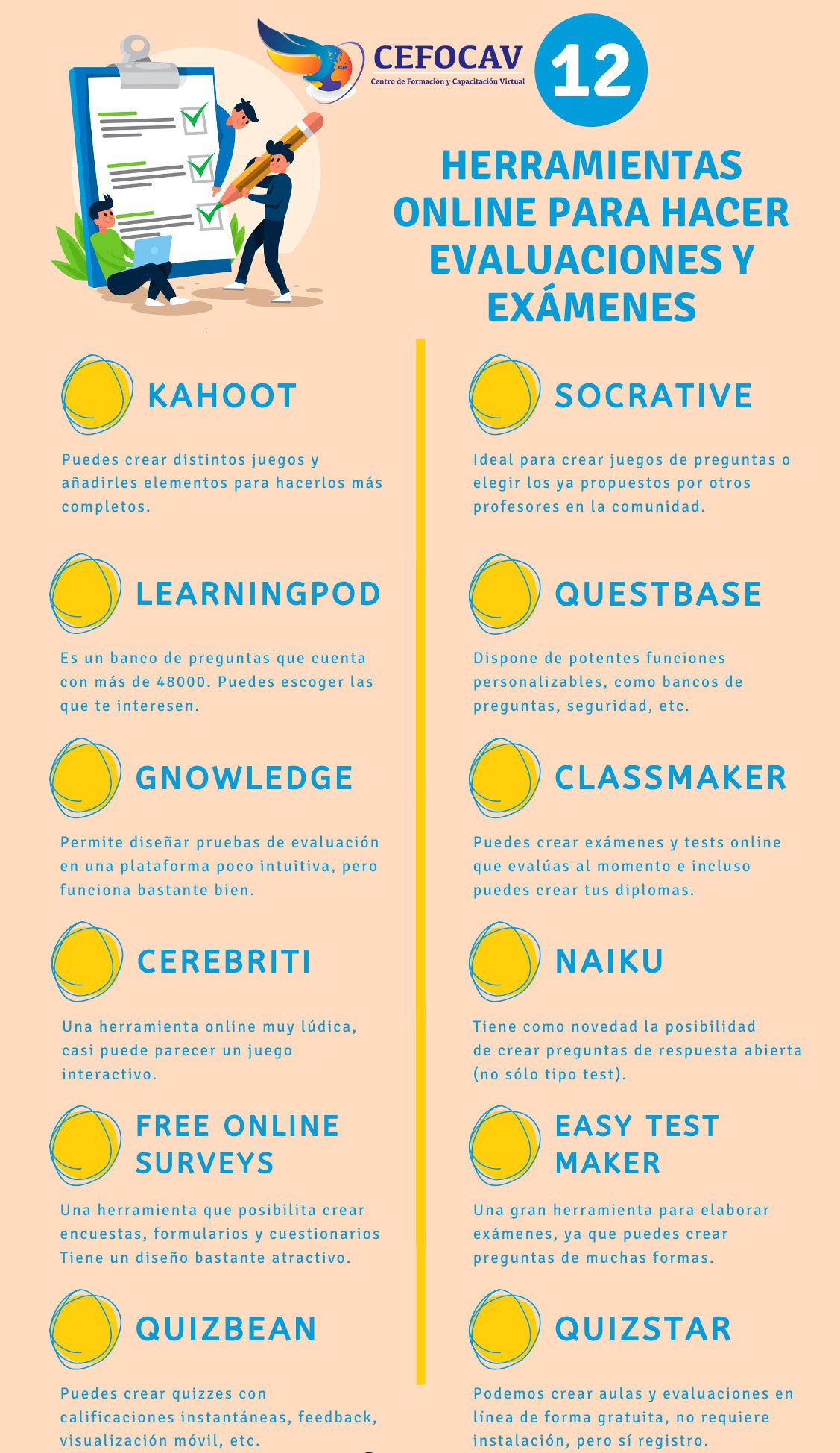 En fin, si necesitas herramientas para evaluar a tus alumnos de forma dinámica y creativa puedes utilizar algunas de las que te proponemos a continuación.