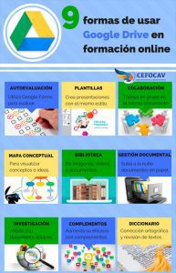 Seguro que muchos conocen el potencial de Google Drive, pero quizás no tienes en cuenta muchos usos de esta herramienta en formación online. Para aquellos que desconocen cómo utilizar Google Drive en e-learning y para los que aún no han probado esta alternativa educativa, hemos creado este post. Te resultará muy útil como complemento a nuestros cursos online en CEFOCAV.
